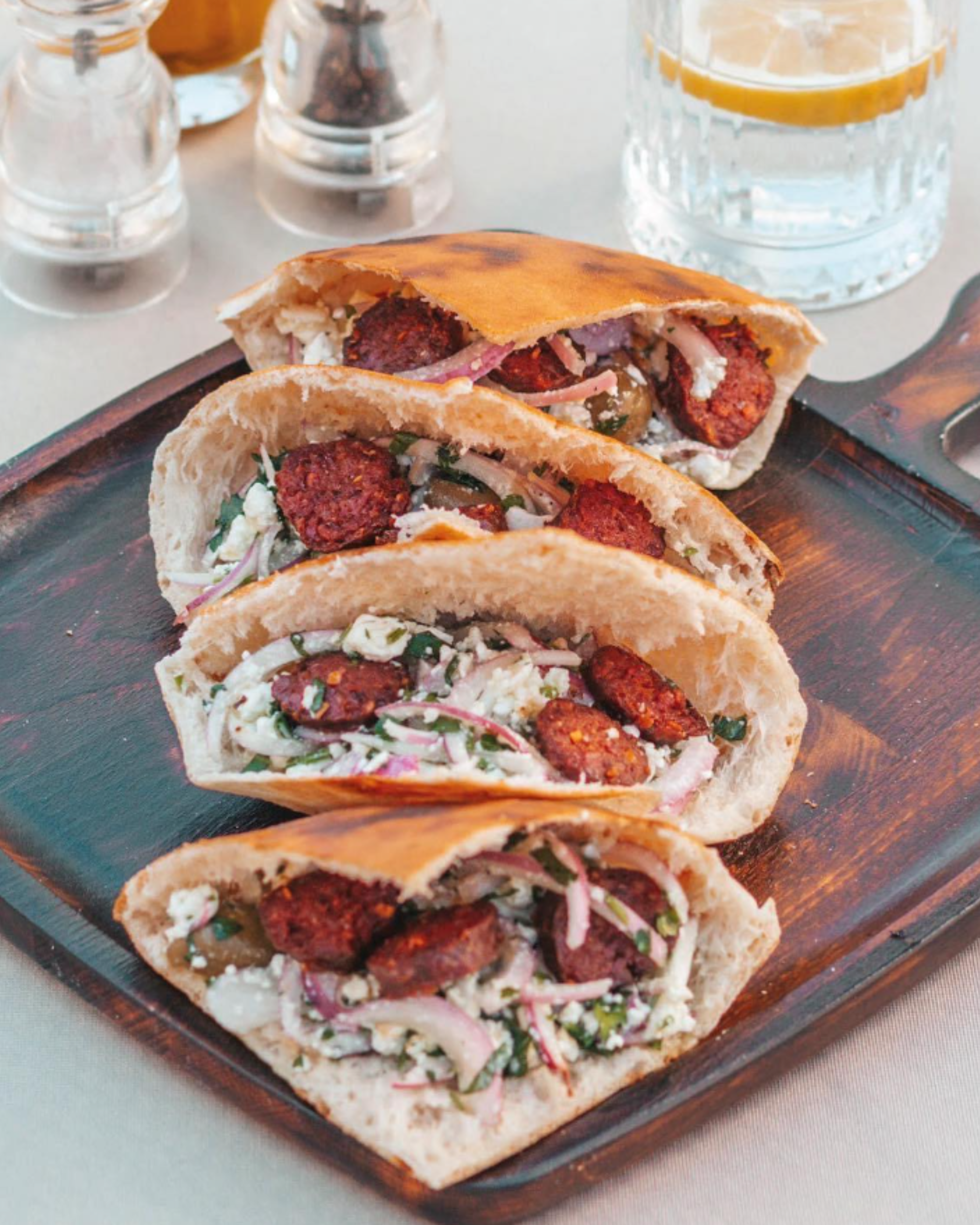 Suxhuk Kosove, qepë e kuqe, djathë i bardhë deleje i stazhionuar, ullinj të zinj & salcë pikante
